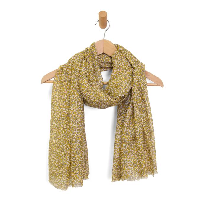 Wrap yourself in sunshine with this Golden Ditsy Floral Scarf! Measuring a generous 180x90 cm, its delicate golden floral pattern adds a cheerful pop to any outfit. Lightweight and soft, it’s perfect for twirling, tying, or draping with a playful flair all day long.