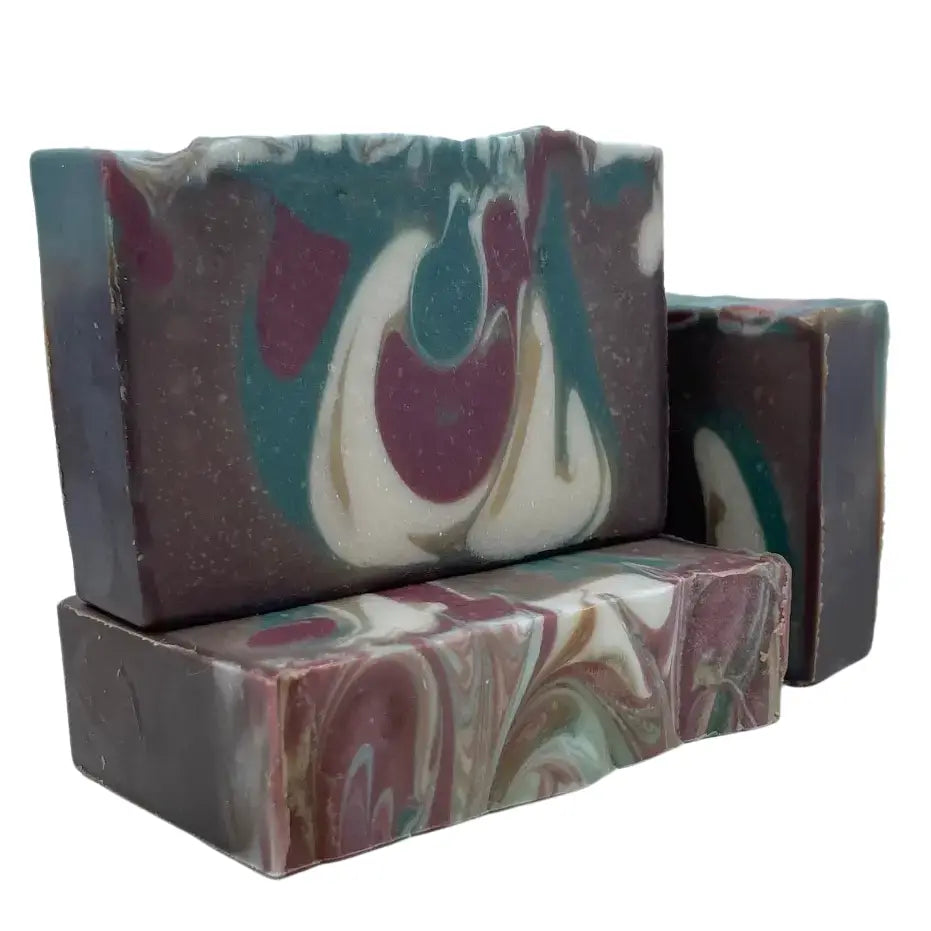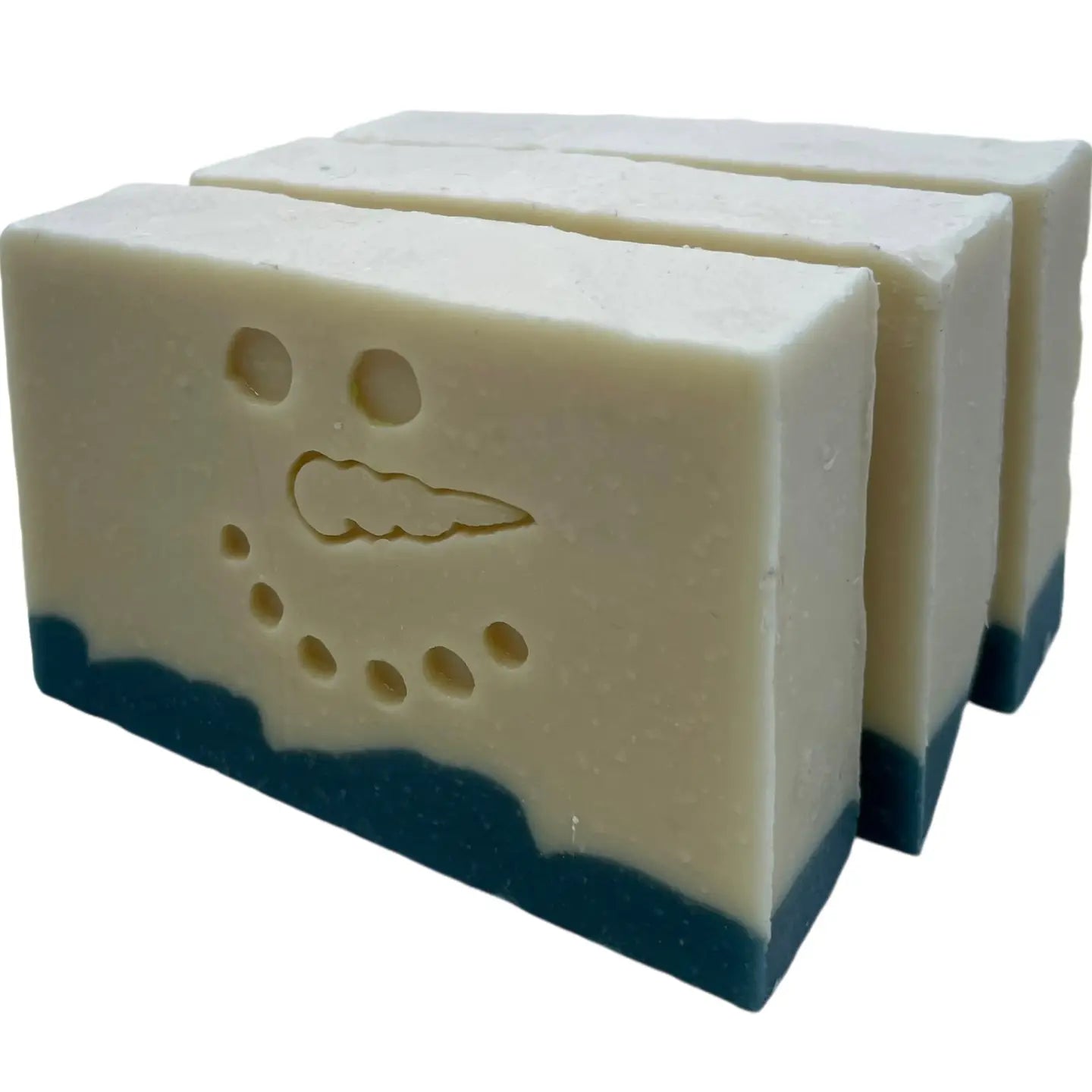 Frosted Wonderland- Snowman face is stamped on both sides of the soap. Fresh breezes, orchid and Ylang dance on top of cypress trees, frosted woods, Oakmoss, and fresh spices. Reminiscent of a walk in the woods. Ingredients: Raw Goat Milk, Olive Oil, Coconut oil, Palm Oil, Sodium Hydroxide, Avocado Oil, Castor Oil, Shea Butter, Fragrance (paraben-free and phthalate-free), Colorant (Mica Powder).