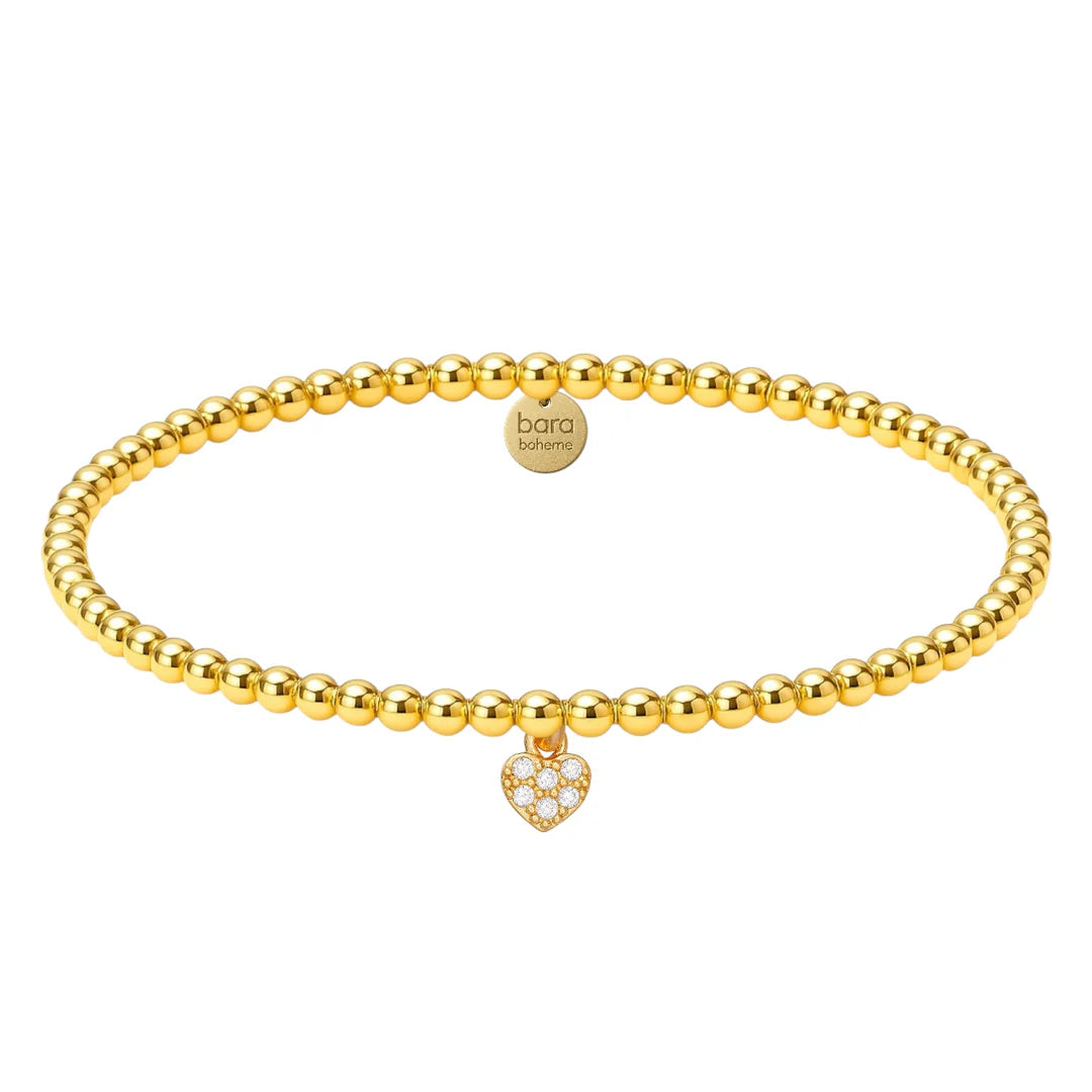 Bara Classic 3mm Bracelet with Tiny Pink Stones Heart Charm