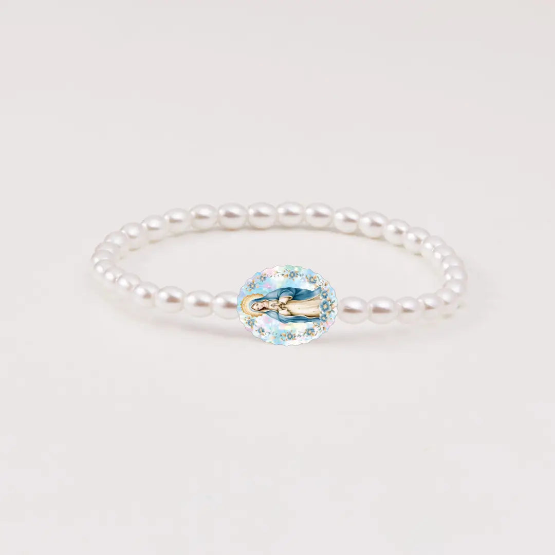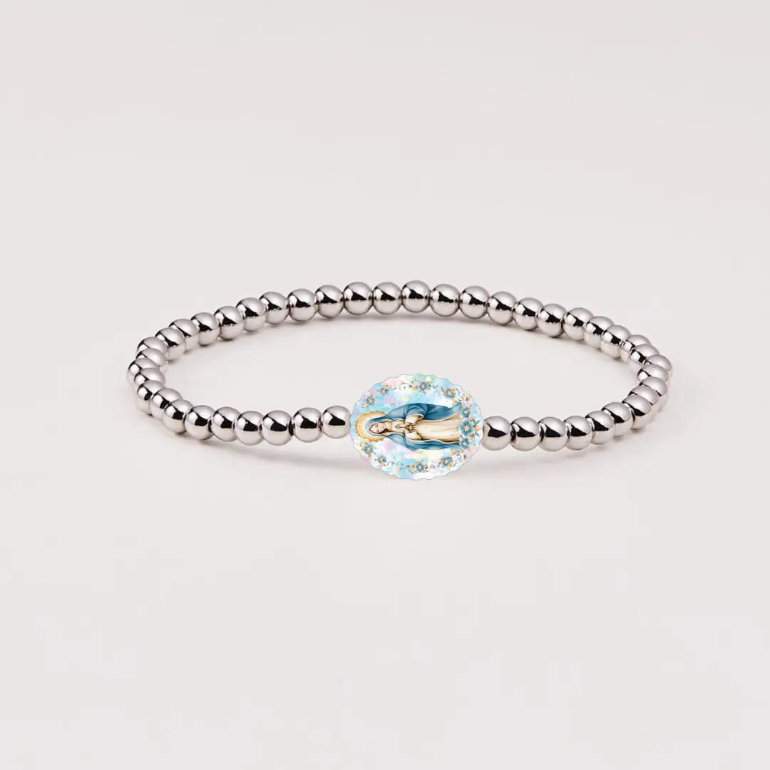 * 4mm waterproof beads * Flexible stretch cord * Resin Miraculous charm is infused with authentic holy water from Lourdes, France * 6.8 inch unstretched circumference (similar to a regular-sized bracelet) * Water-resistant