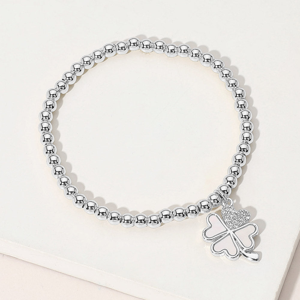 Mother of Pearl Clover Charm Beaded Stretch Bracelet