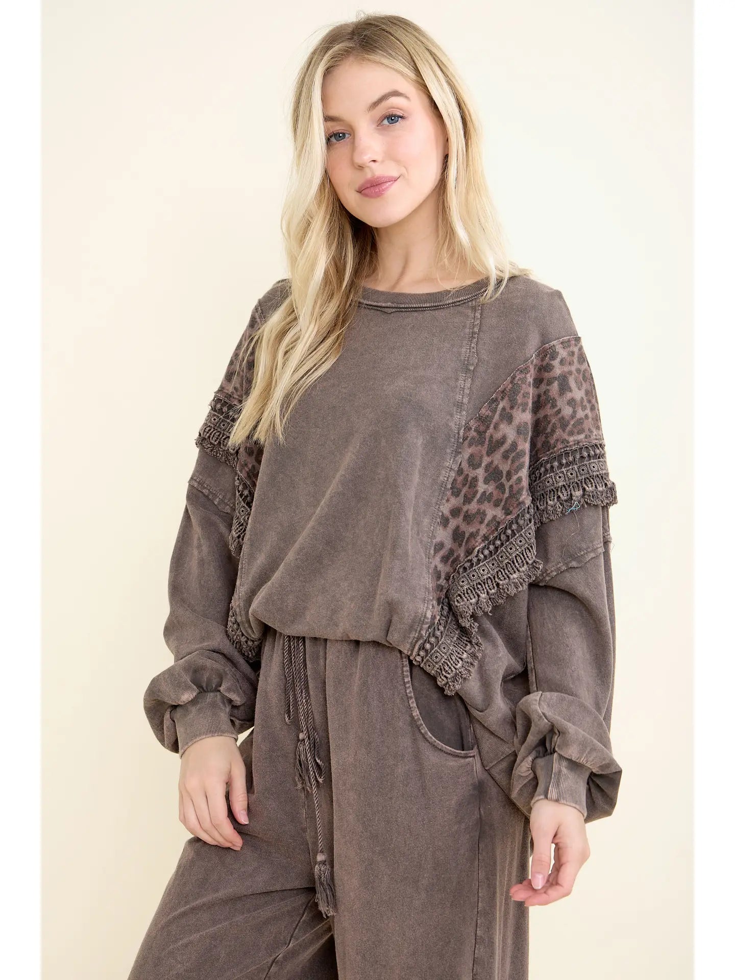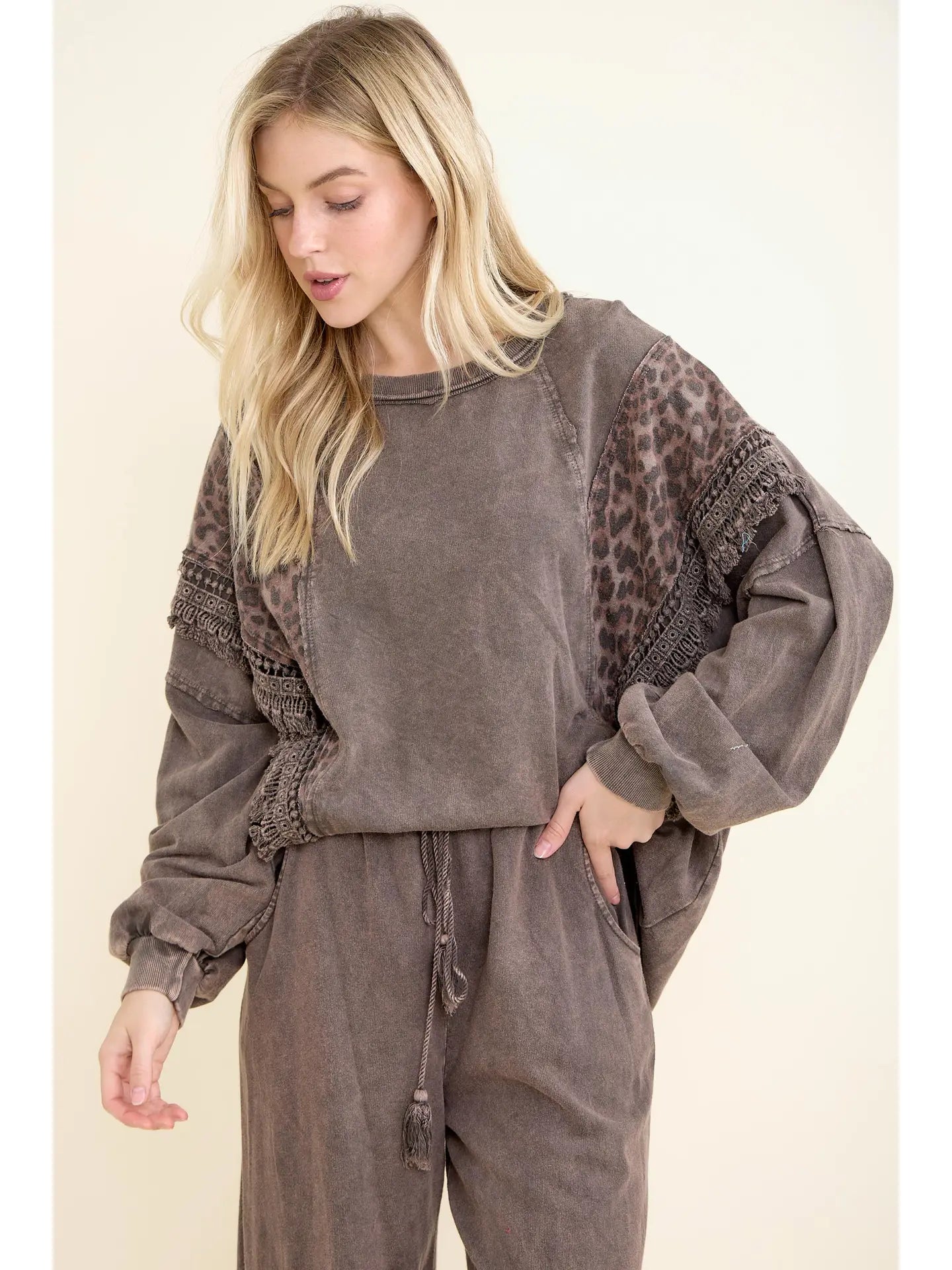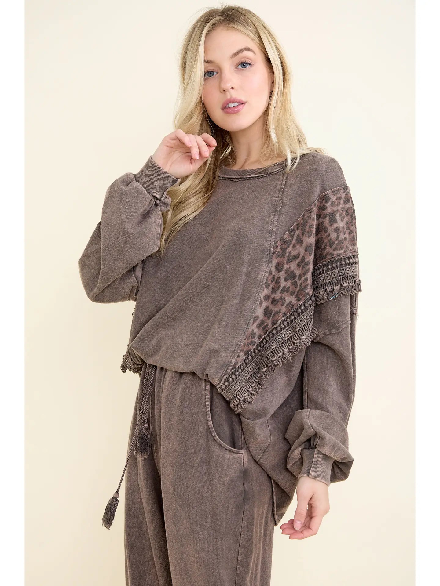 Mineral Washed Cheetah Leopard Fringe Tassel Top