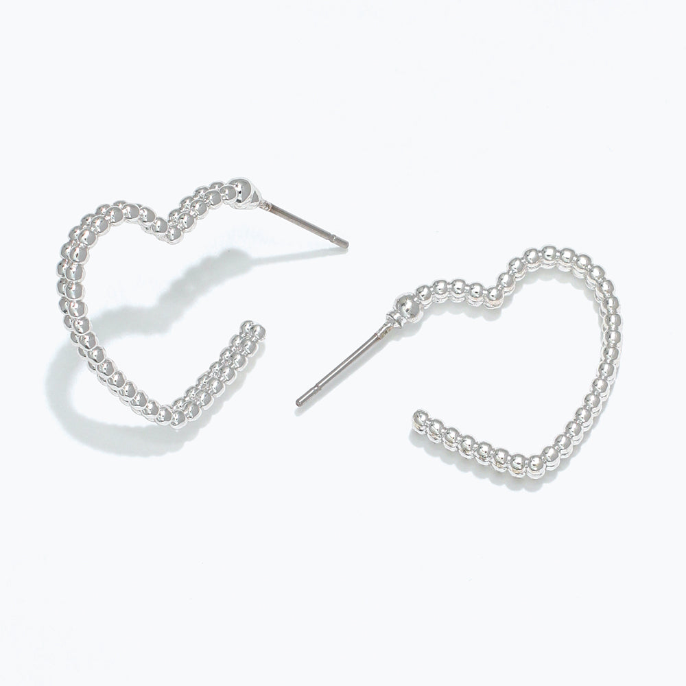 Silver Beaded Heart Hoop Earrings