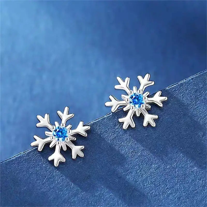 Sterling Silver Large Stone Snowflake Stud Earrings