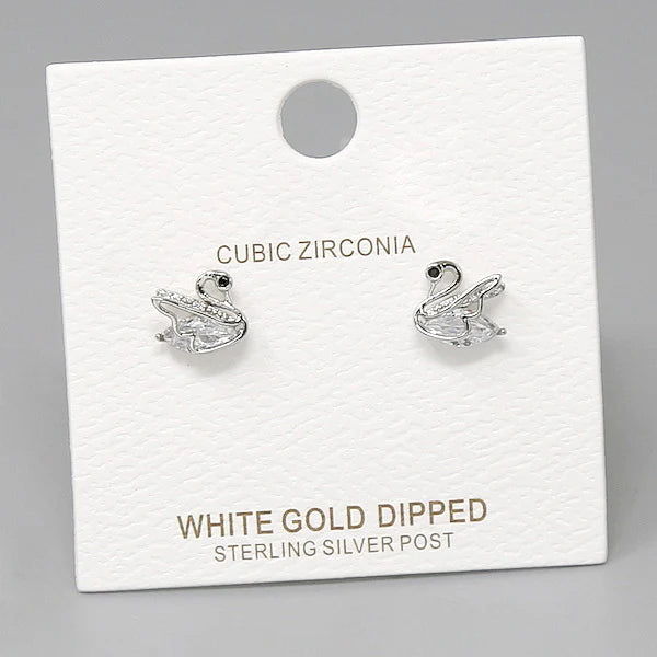 Swan CZ Embellished Stud Earrings