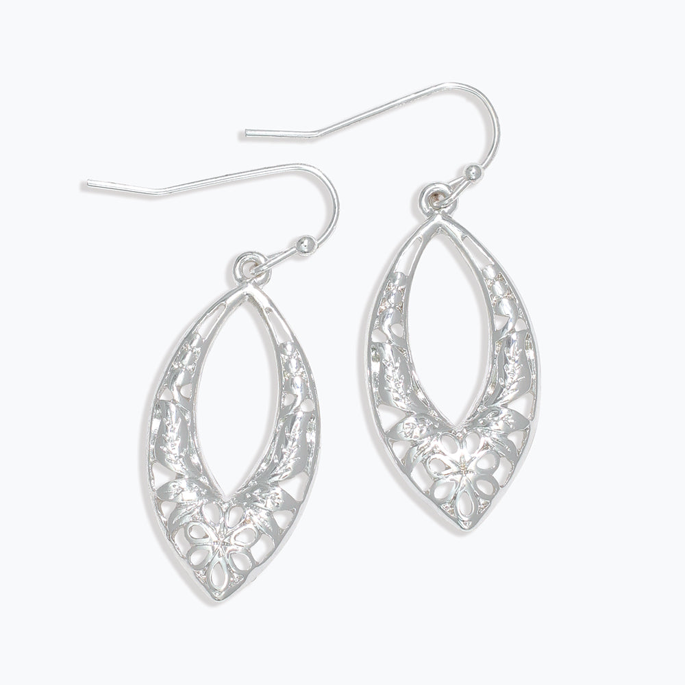 Silver Floral Cutout Drop Earrings