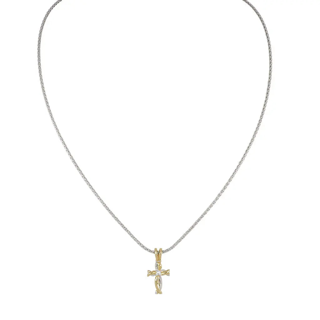 John Medeiros Small Two-Tone Twist Cross with Center Stone