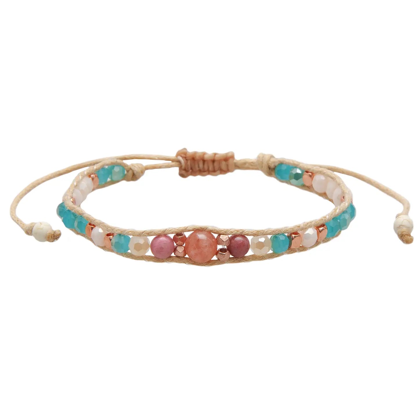 . Our bracelets are made with cotton cords, coconut shell clasps, semi-precious stones, and lots of positive vibes.