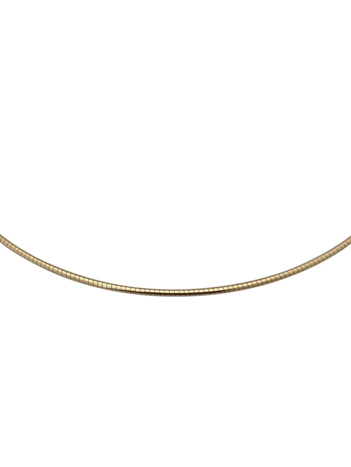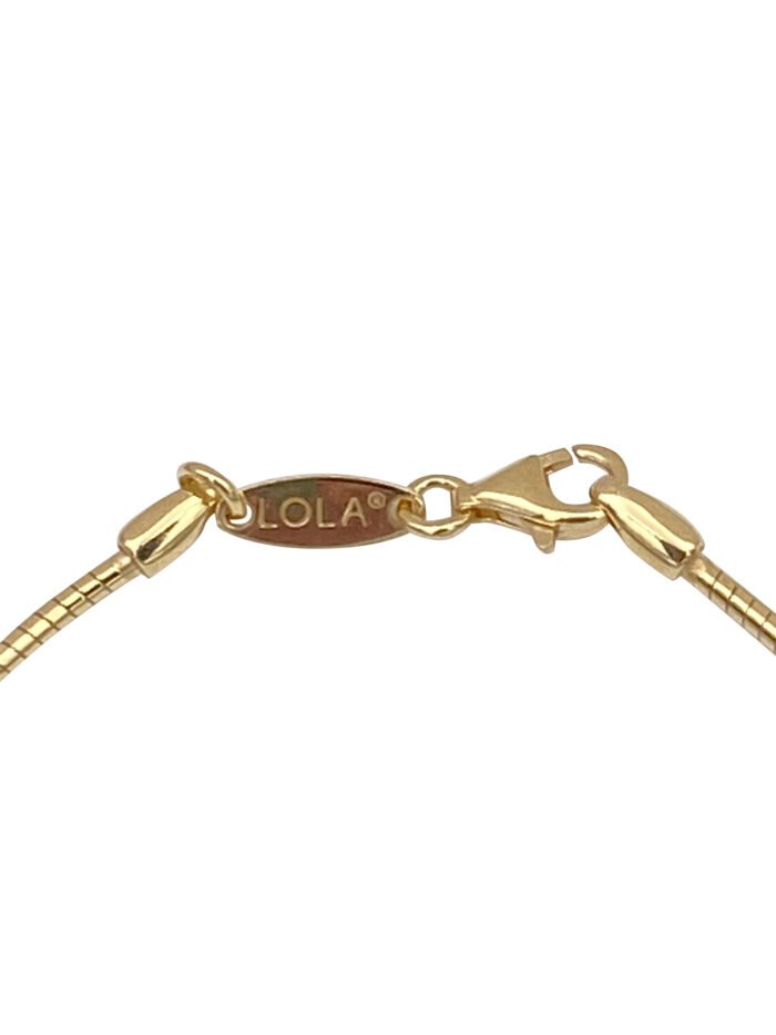 LOLA’s Omega silver and gold chokers are available in two lengths, 16″ & 18″.