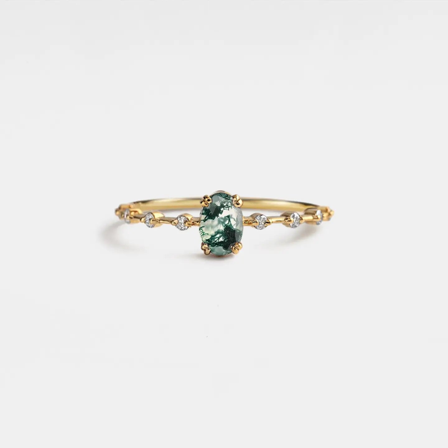 • Material: Solid 925 Sterling Silver ∙ Natural Moss Agate ∙ Cubic Zirconia
