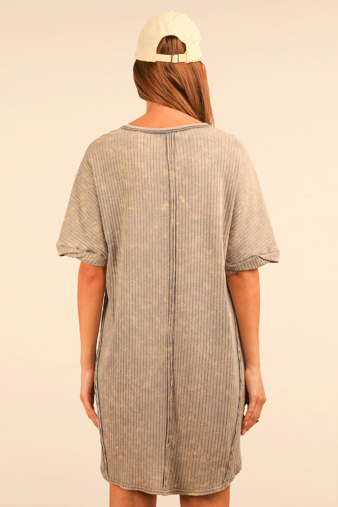 Mineral Washed Ribbed Knit Mini Dress - S is backordered and will ship as soon as it is back in stock.