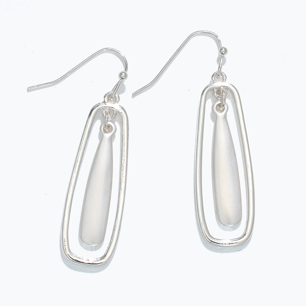 These matte and silver drop earrings bring a playful twist to a sleek, long rectangle design. The mix of textures adds a fun contrast that catches the eye, making them perfect for adding a modern edge to any outfit. Lightweight and stylish, they’re sure to brighten your day with a touch of flair.