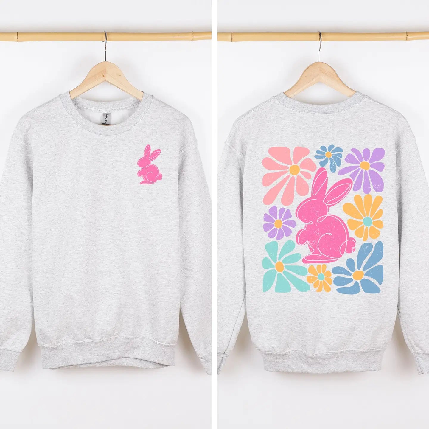 Step into spring with a sweatshirt that brings the Retro Floral Easter Rabbit motif to life! This isn't just a top layer; it's a two-sided wardrobe moment that travels with you.